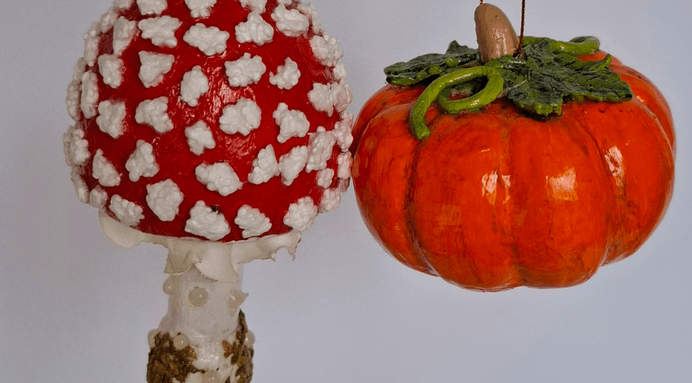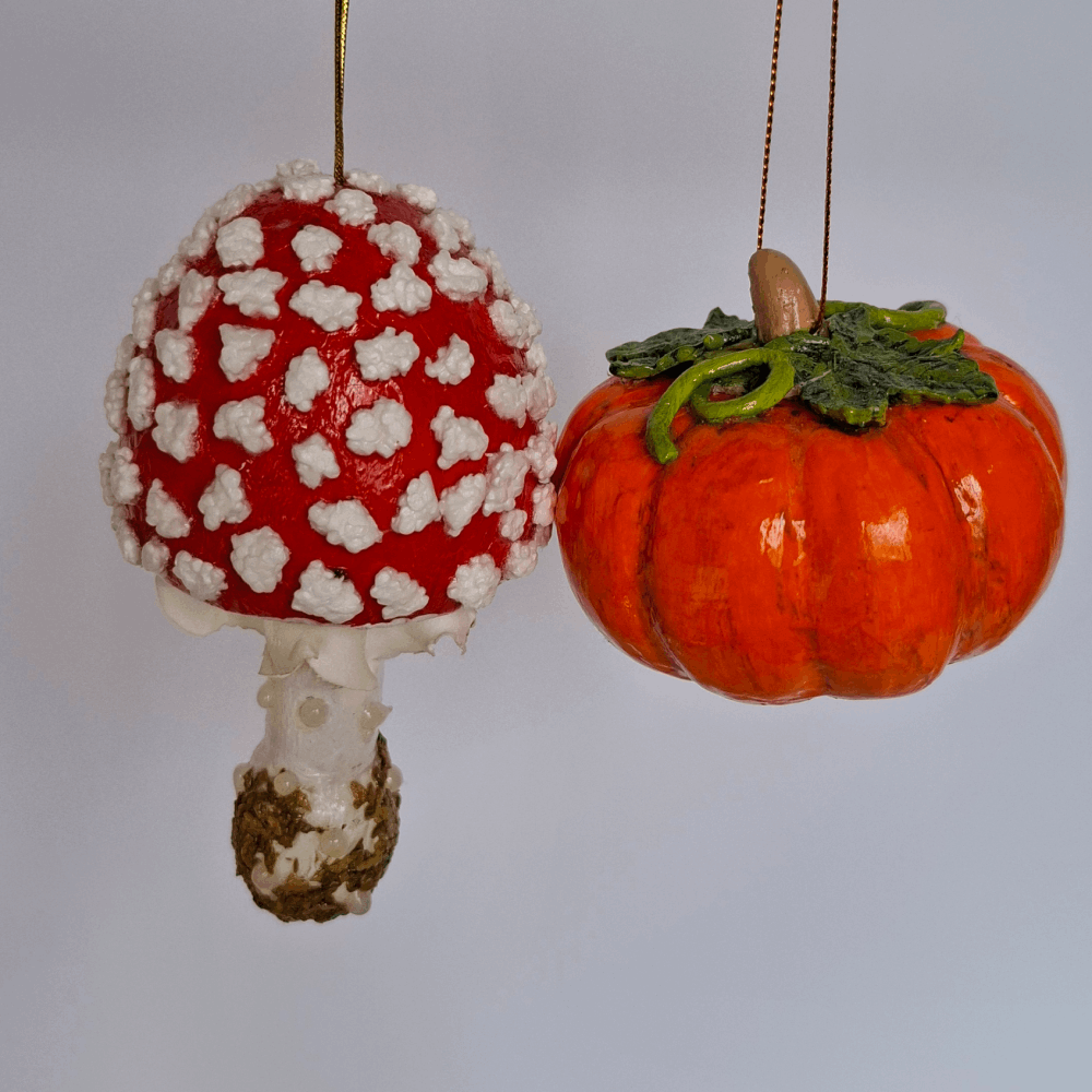 - Розмір вироби: висота мухомора 11 см., гарбузик 5 см×8 см.