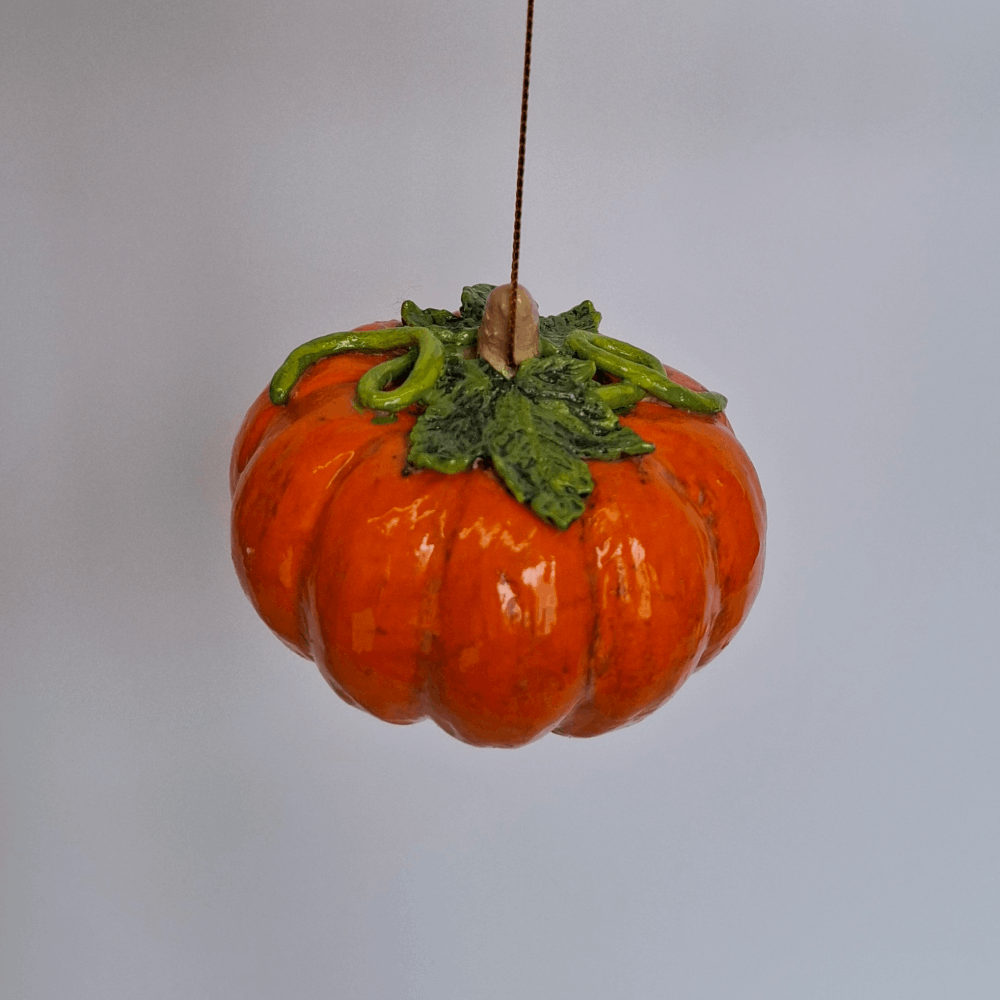 Гарбуз із глянцевою поверхнею та реалістичними листочками додає композиції теплоти й затишку.