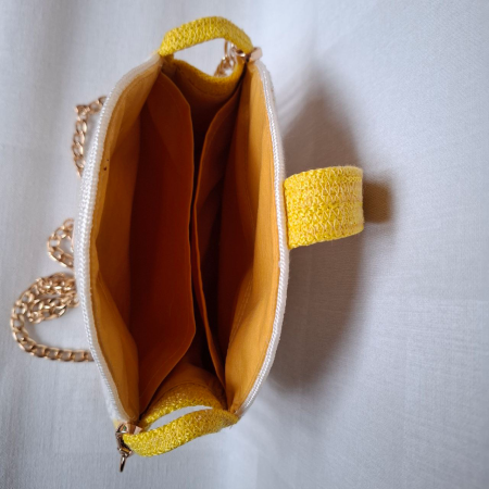 Виготовлена з поліефірного шнура, вона має яскраві жовті деталі, які додають настрою та свіжості.